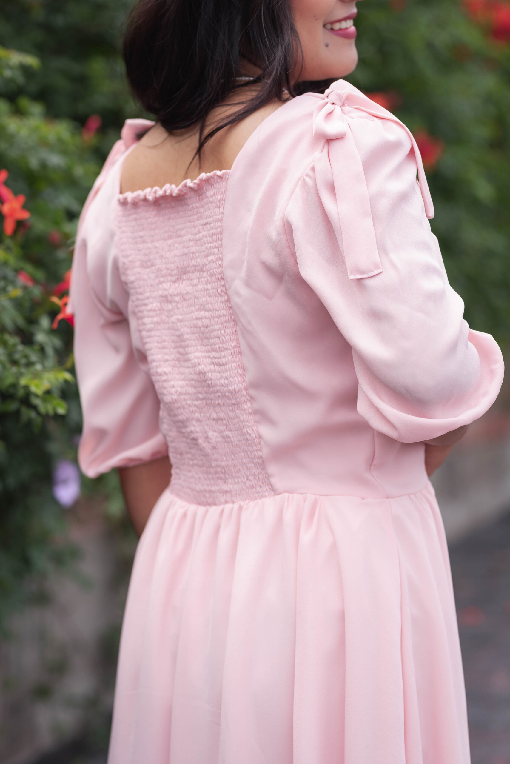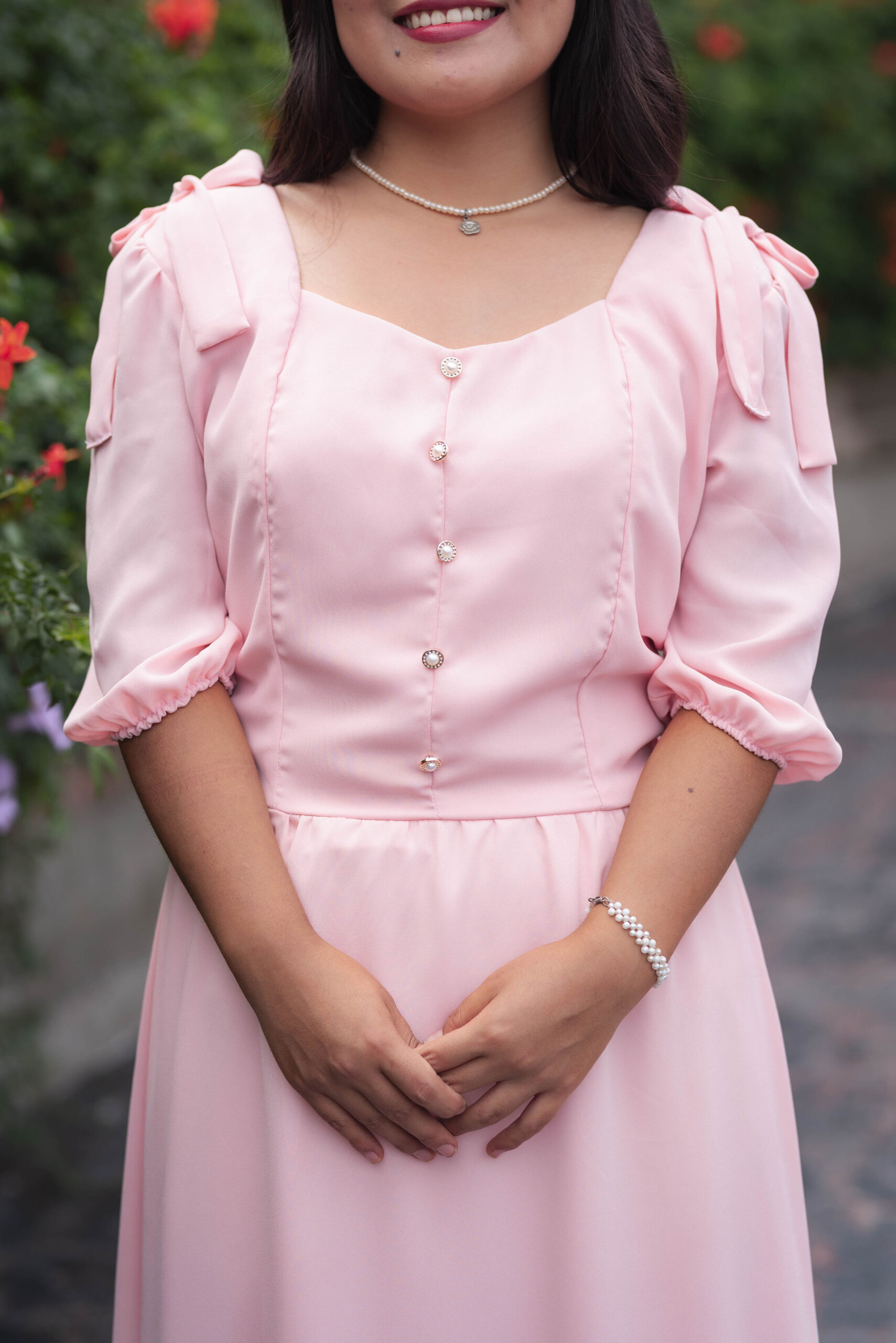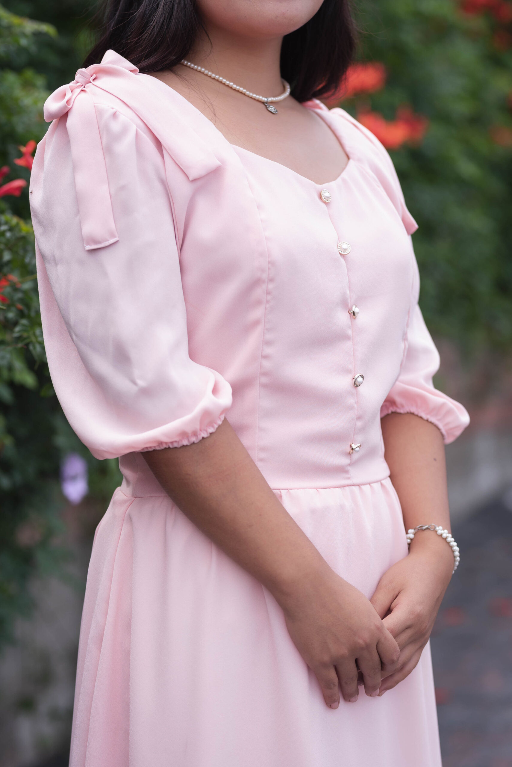 El vestido Aurora combina dulzura y elegancia en un diseño atemporal. Su tono rosa pastel, botones perlados y mangas abullonadas crean un look romántico y delicado. Confeccionado en tela suave y ligera, es ideal para ocasiones especiales o para sentirte femenina y radiante cualquier día.